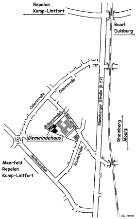 Ewald Charwath Hinweis: Das Gemeindehaus ist zu Fuß über die Straße "Am Frankenfeld" erreichbar, mit dem Auto über die Isergebirgsstraße und dann wieder zu Fuß ein kleines Wegstück über "Am Frankenfeld". 47445 Moers Eick-West, Am Frankenfeld 18 Dienstags 19:00 Uhr 47445 Moers Repelen, Lerschstraße 71 Dienstags 19:00 Uhr